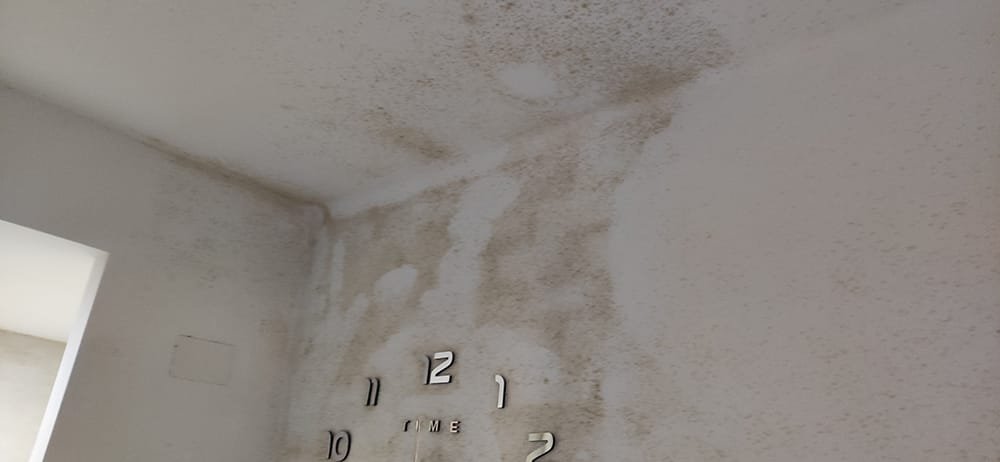 - Moho negro en esquinas, detrás de muebles y en techos de dormitorios y baños